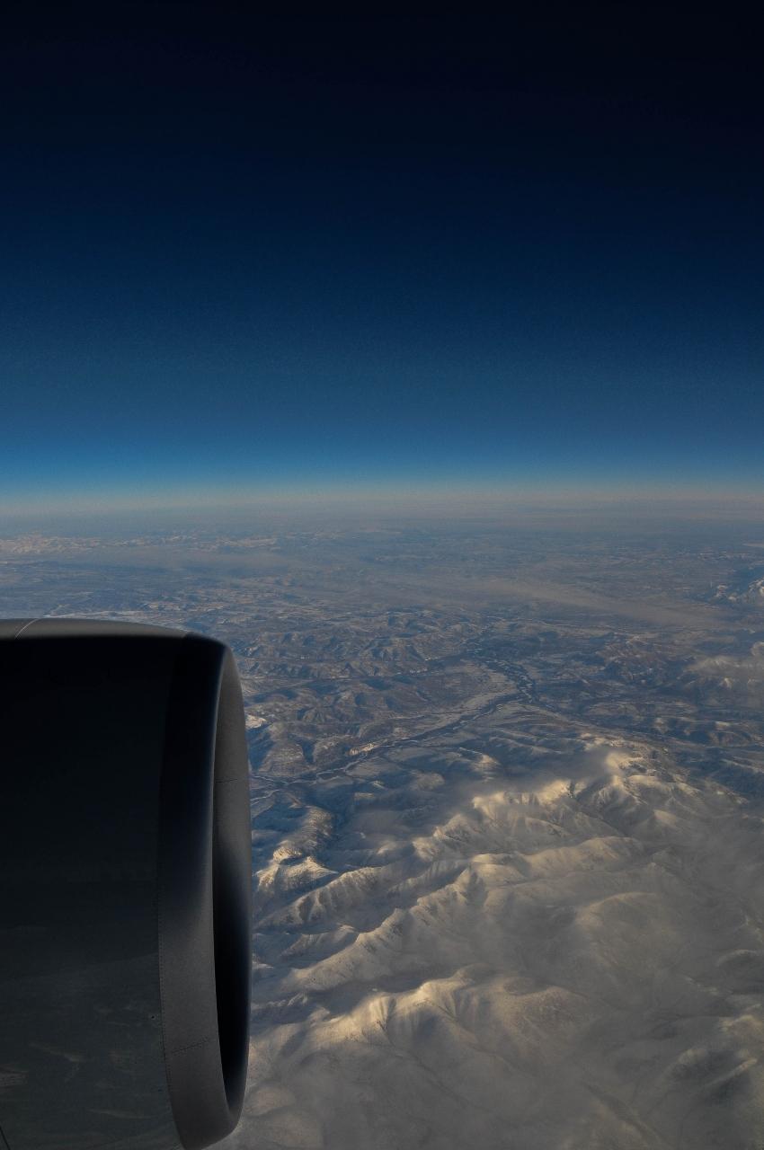 窓も凍ってきて、外気温を見ると-66度とかいう非常にクレイジーな気温でした。