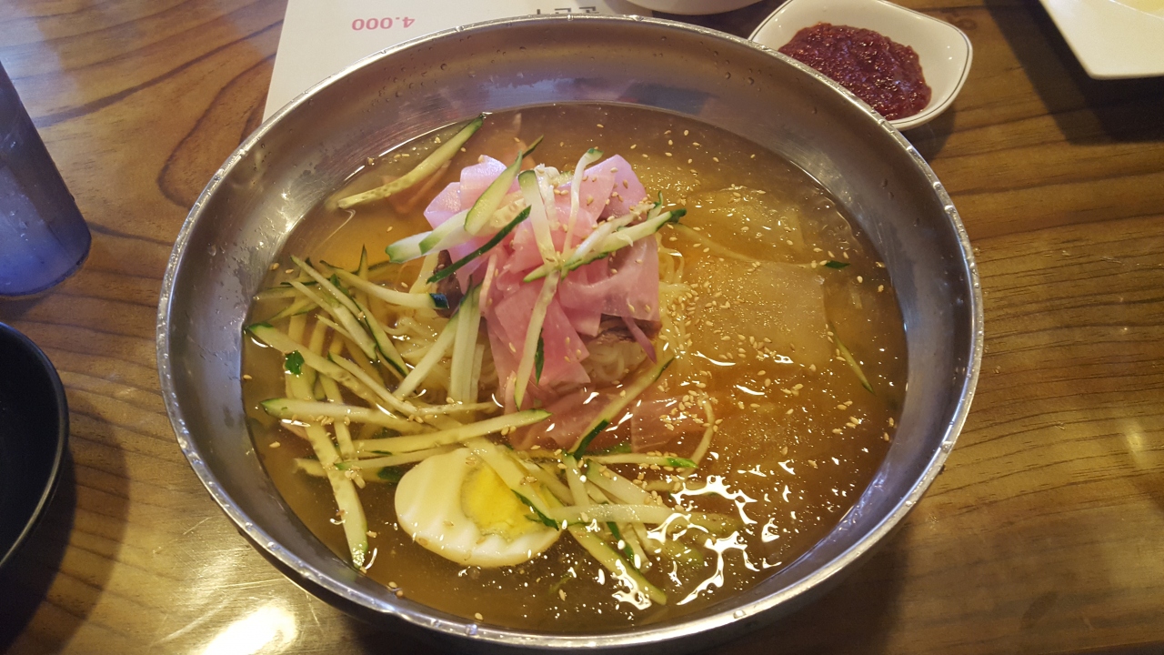 一番早くできるやつ!と、水冷麺、じゃなくて水ミルミョンを注文。