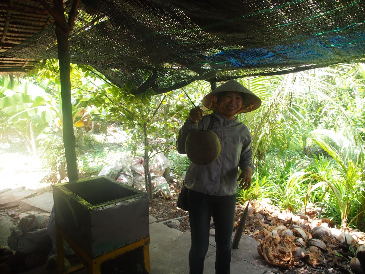 2016年7月17日、メコン川の中州の島のクルーズを終えた後は、ココナッツミルクキャンディー工場だのを見学します。この辺の方が、ホーチミンより物価が安いと言うのですが、どうもそんな感じはしないです。多分言い値なんで、購買意欲が湧きません。地元の人もノンビリしていて、あまり売る気も無い様な気もしますね。