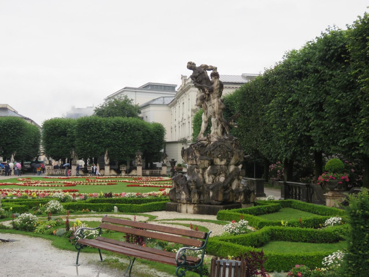 雨の中、午前9時40分にザルツブルグに到着、その後、現地ガイドさんの紹介があり、新市街のミラベル庭園へ移動する。