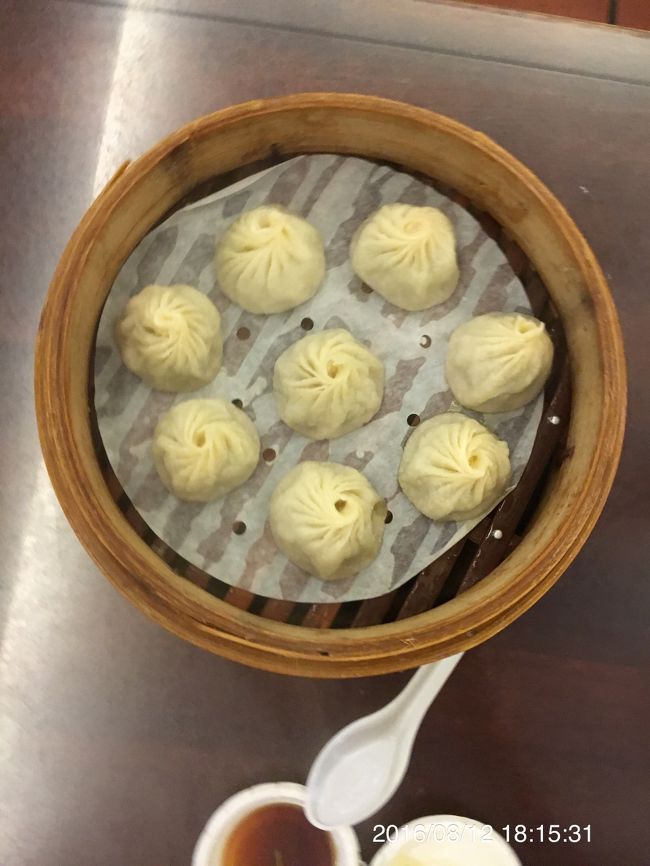 瓶ビール、小籠包 2 、エビ蒸し餃子、卵スープ、豆沙小包(こしあん)を頼んで800元程。