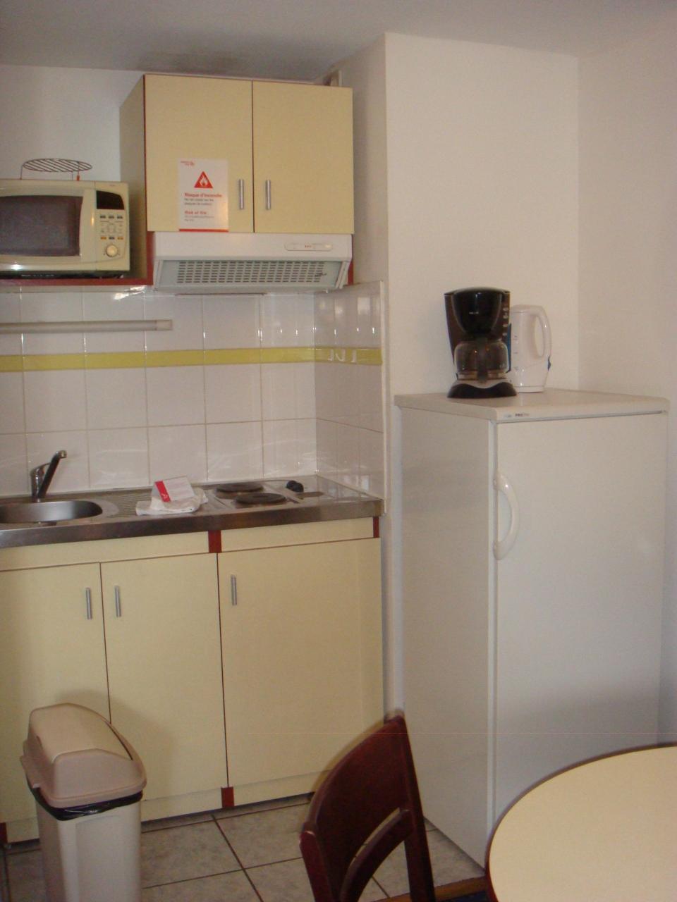 今回のお宿、Appart'City Clermont=Ferrand。街の中心部に近く、通りに面しているのに静かでした。キッチン設備も整っていて、包丁やお皿はもちろん、コンロや電子レンジもあるので料理もバッチリです。外食はお金もかかるし飽きてくるので重宝しました。ソファベッドもついていて、寝室と合わせると4人まで宿泊可能です。