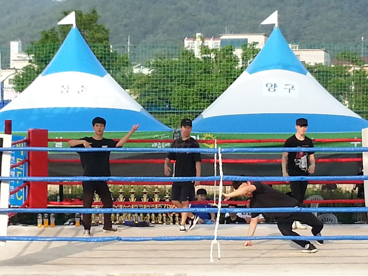 今回の「へそ祭り」では他のイベントも同時に開催されていて、こちらは「ビート格闘技チャンピオン大会」のリング。