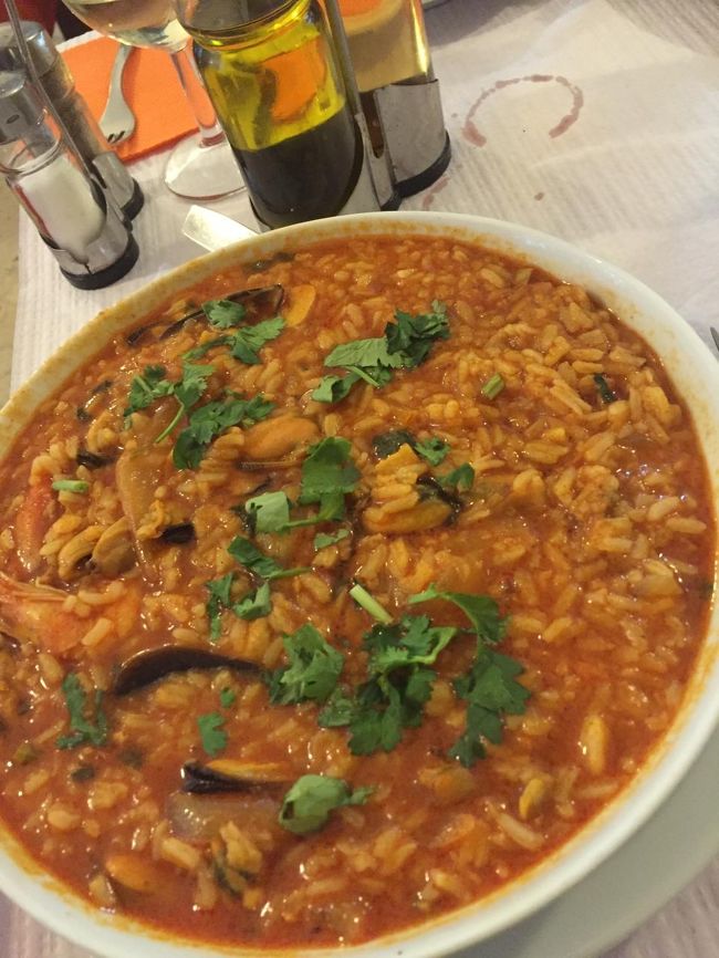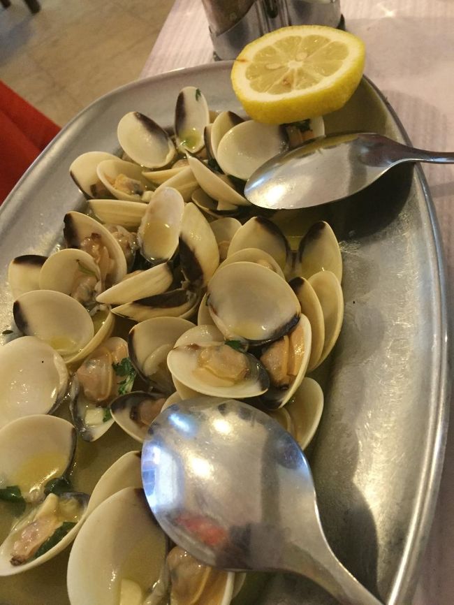 貝の炒め物、シーフードのリゾット、スズキのグリルと白ワインで一息つく。なかなか美味しかったです^^