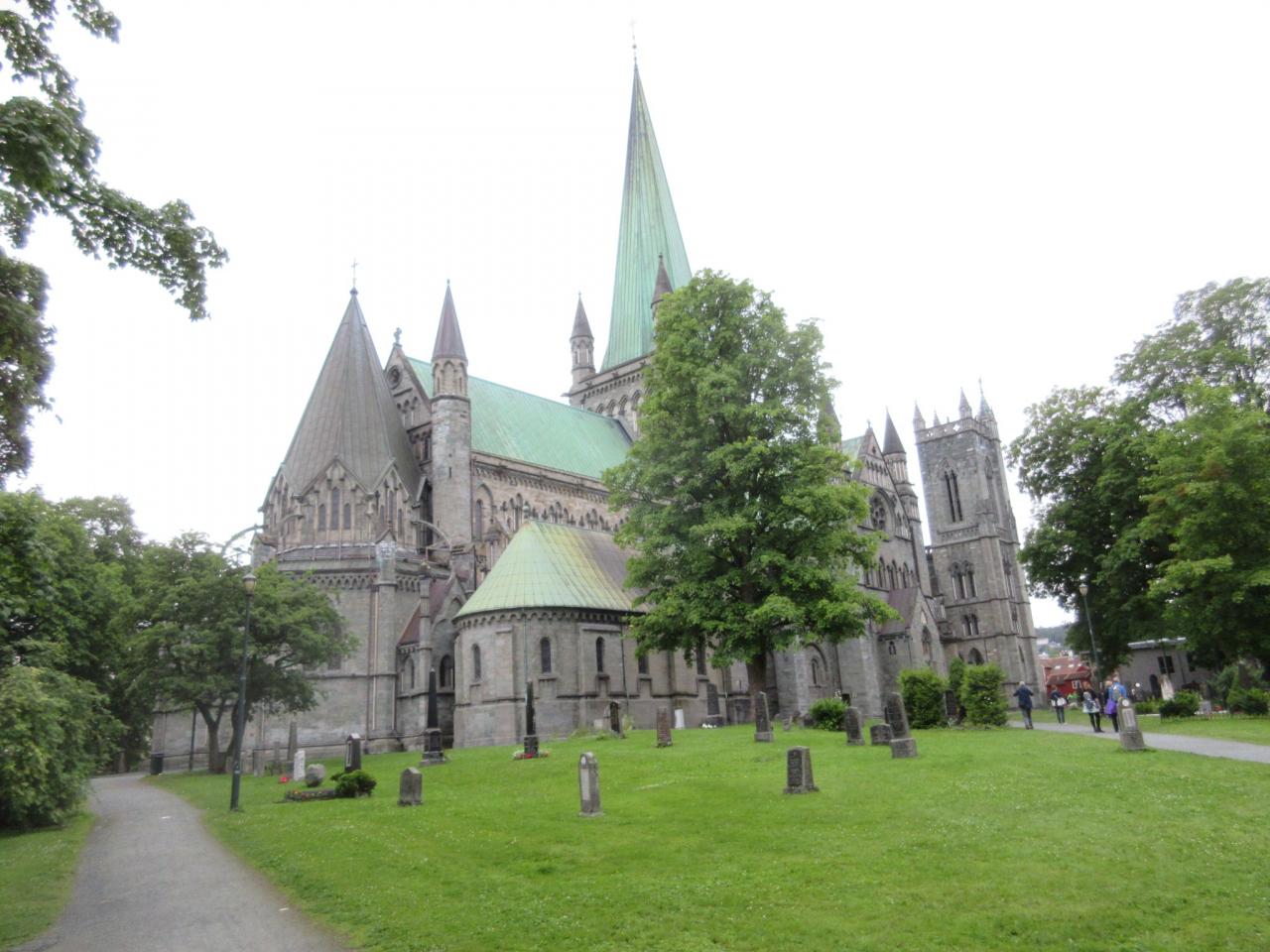 トロンハイムはノルウェー第3の都市で,中世にはノルウェーの首都として栄えたそうだが、現在は緑にも恵まれ川が流れて落ち着きのある小さな街。私たちは3時間半ほど町を散策した。