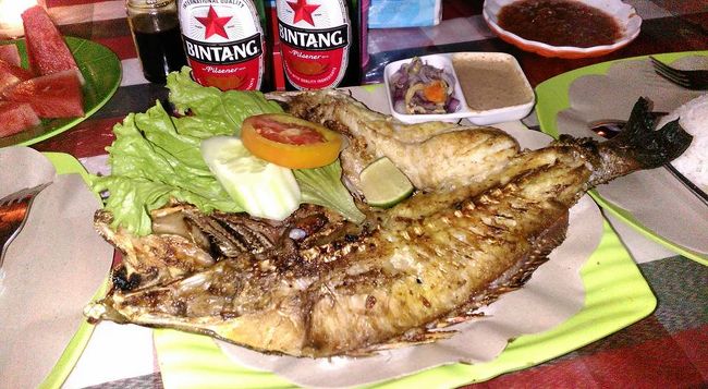 プシンガハンのサテイカン定食 1人前35,000Rpだよ。