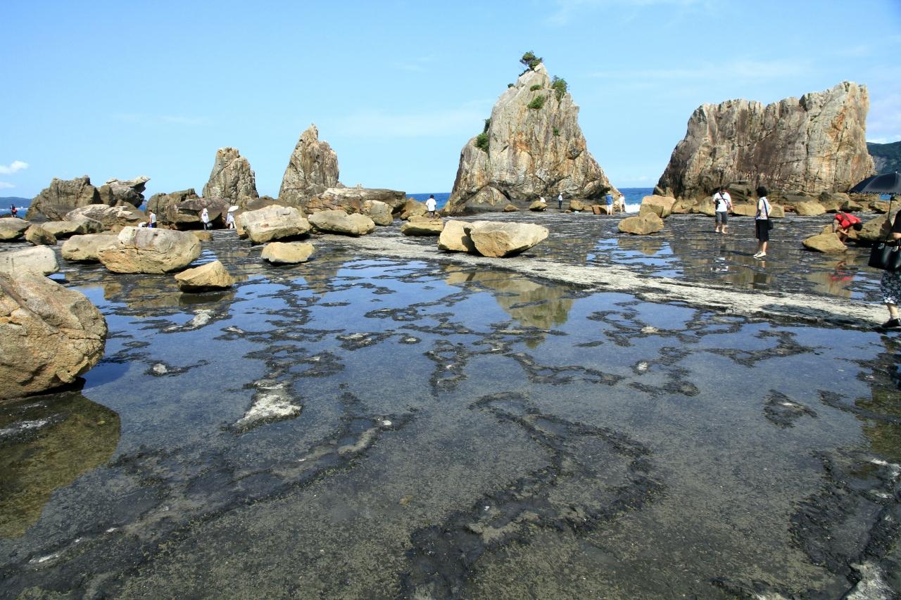 海の浸食により岩の硬い部分だけが残り、あたかも橋の杭だけが立っているように見える奇岩です。 -