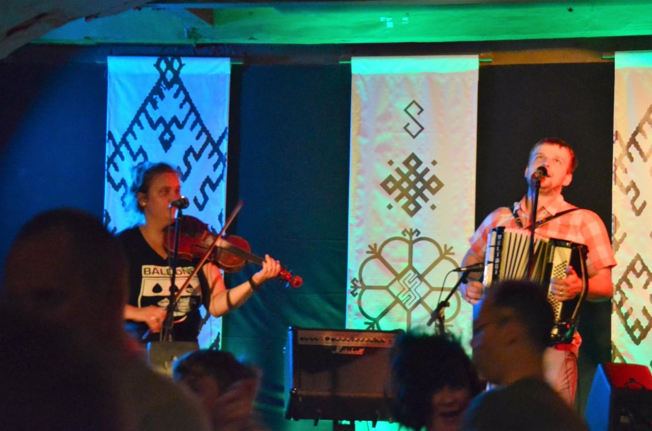 ホールではラトビア伝統音楽?の生演奏にのっとみんな踊っています。