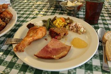 農業と酪農が盛んなこの地域は食べ物がおいしいと評判ですが、たしかにチキンウィングやミートローフなどの肉類もおいしかったし、野菜も豊富だったし、もう満腹だったのにアイスクリームはミルクの味が濃厚で食べ始めたら止まりませんでした。 -