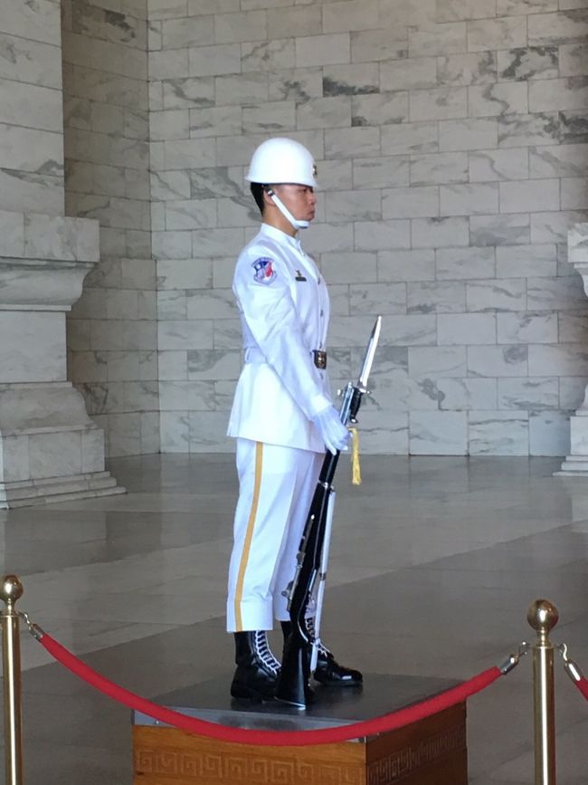 中には、蒋介石の銅像があって、それを衛兵が守ってます。