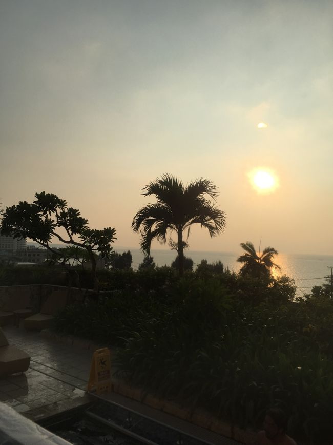 向こうに琉球温泉瀬長島ホテルと、その裏手のウミカジテラスが見えた〜 -