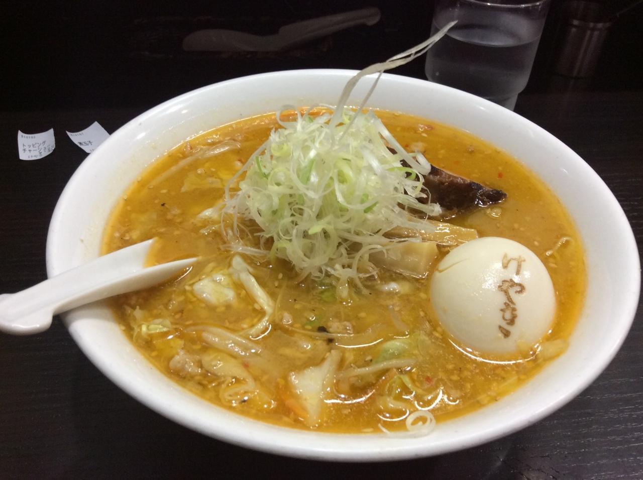 ジンギスカン後のすみれの半みそラーメン。半熟玉子もおいしい。