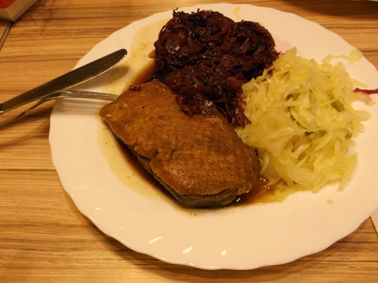 連れは、チキンに付け合わせのザワークラウト。たっぷりね・・とおばちゃんに頼んだら山盛りのザワークラウト。