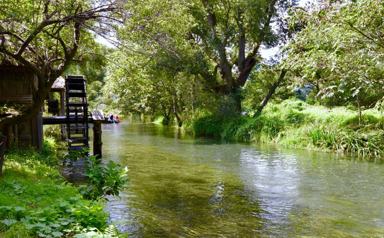 緩やかに水車が回る蓼川の風景。綺麗です。