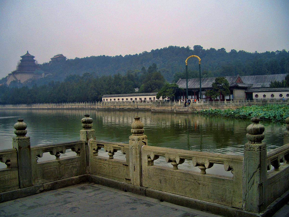 杭州の西湖を模して造られた昆明湖、そして左向こうに八角三層の建物「仏香閣」。