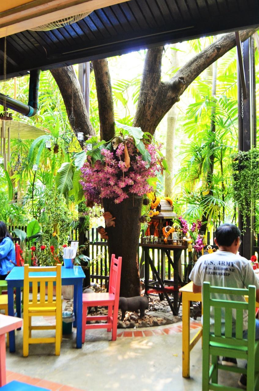 お店の内装は原色系カラフルで楽しげな空間を演出。タイの昔ながらの大衆食堂みたいなベースだけど一線を画した感じで、高級とは言わないけどお洒落な感じ。