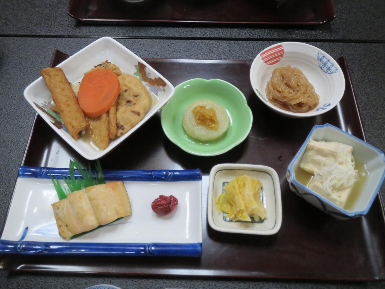 印象としては、「ゆうべわが家はおでんやってん。その残りで悪いけど」という雰囲気です。豆腐も薄味で炊いたのをそのまま台所に放置してあった、という感じ。室温のふろふき大根、というのもあまりお目にかかれないでしょう。ふつうじゃない。