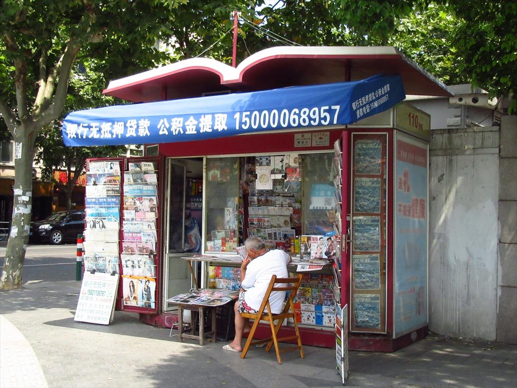 新聞スタンド。上に大きい本がのっているのが特徴。