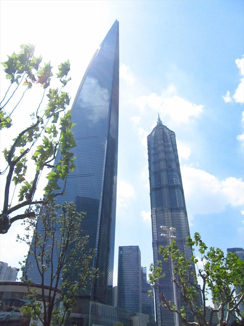 この角度からだととがっているナイフのような上海環球金融中心。