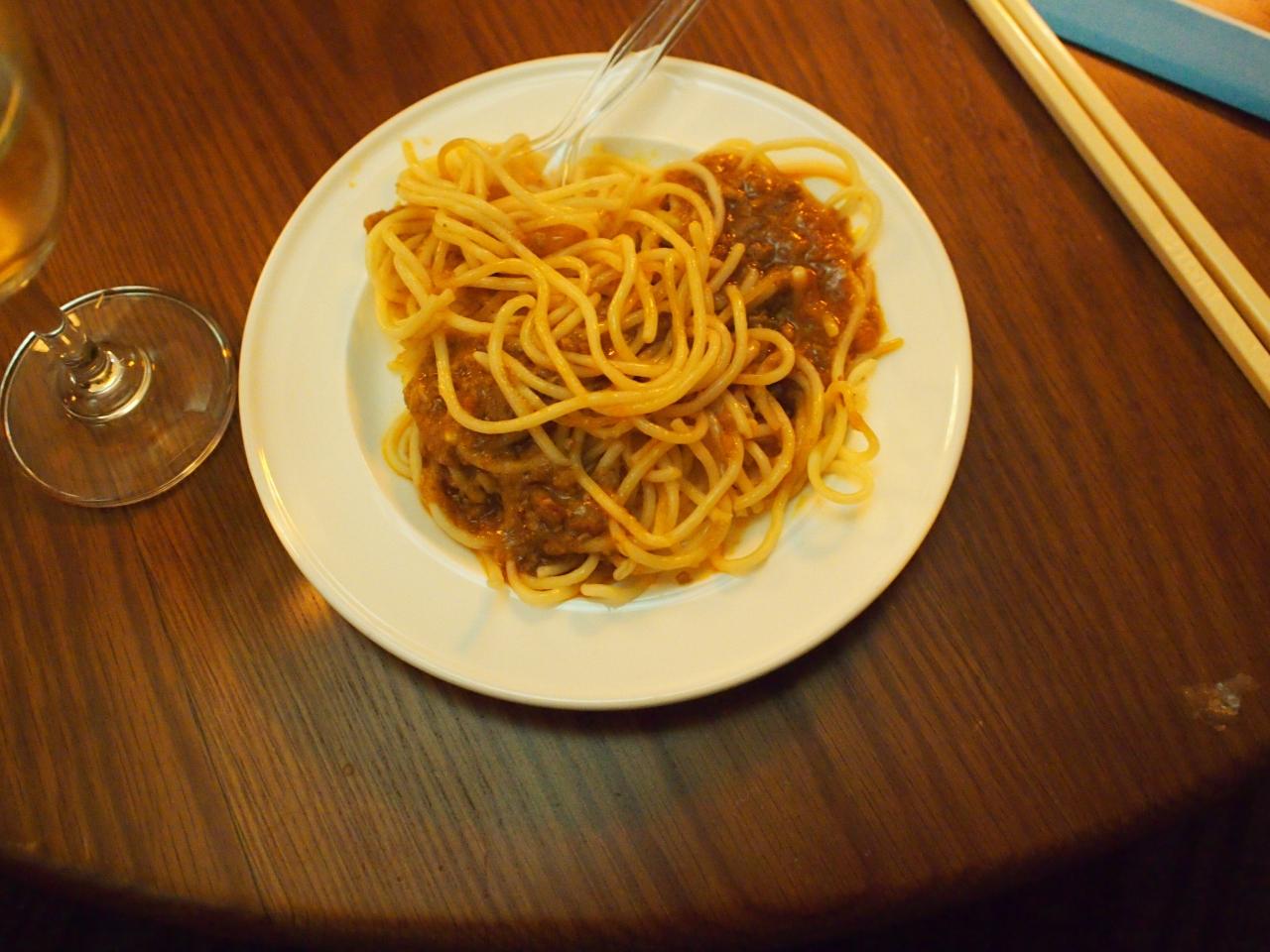 ミートソースも食ってた。