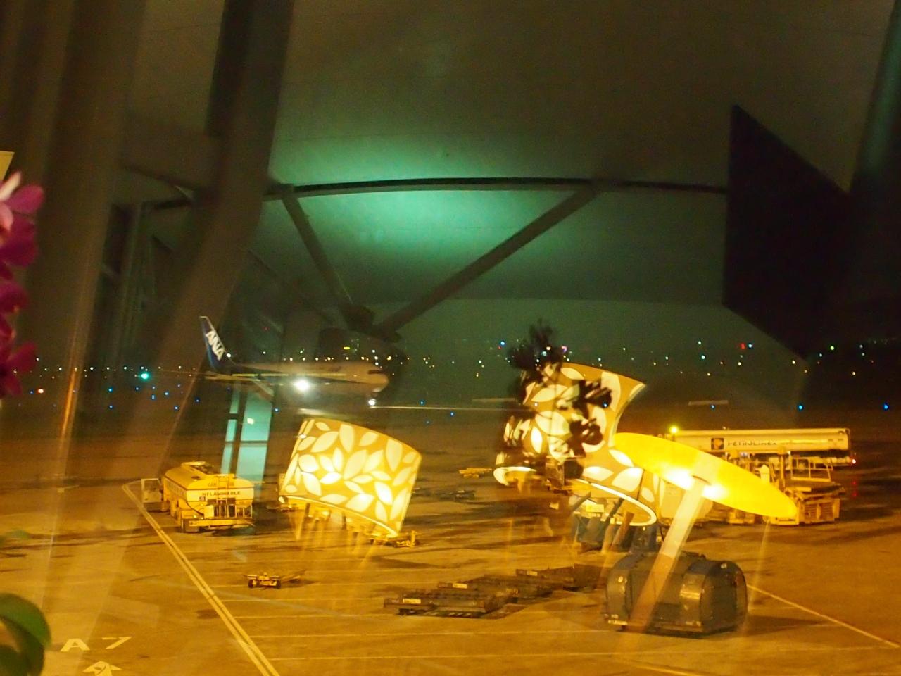 ANA機、後から思えばこいつのせいで出発が遅れた。隣の出発ゲート。搭乗30分前なので、ラウンジを出ました。