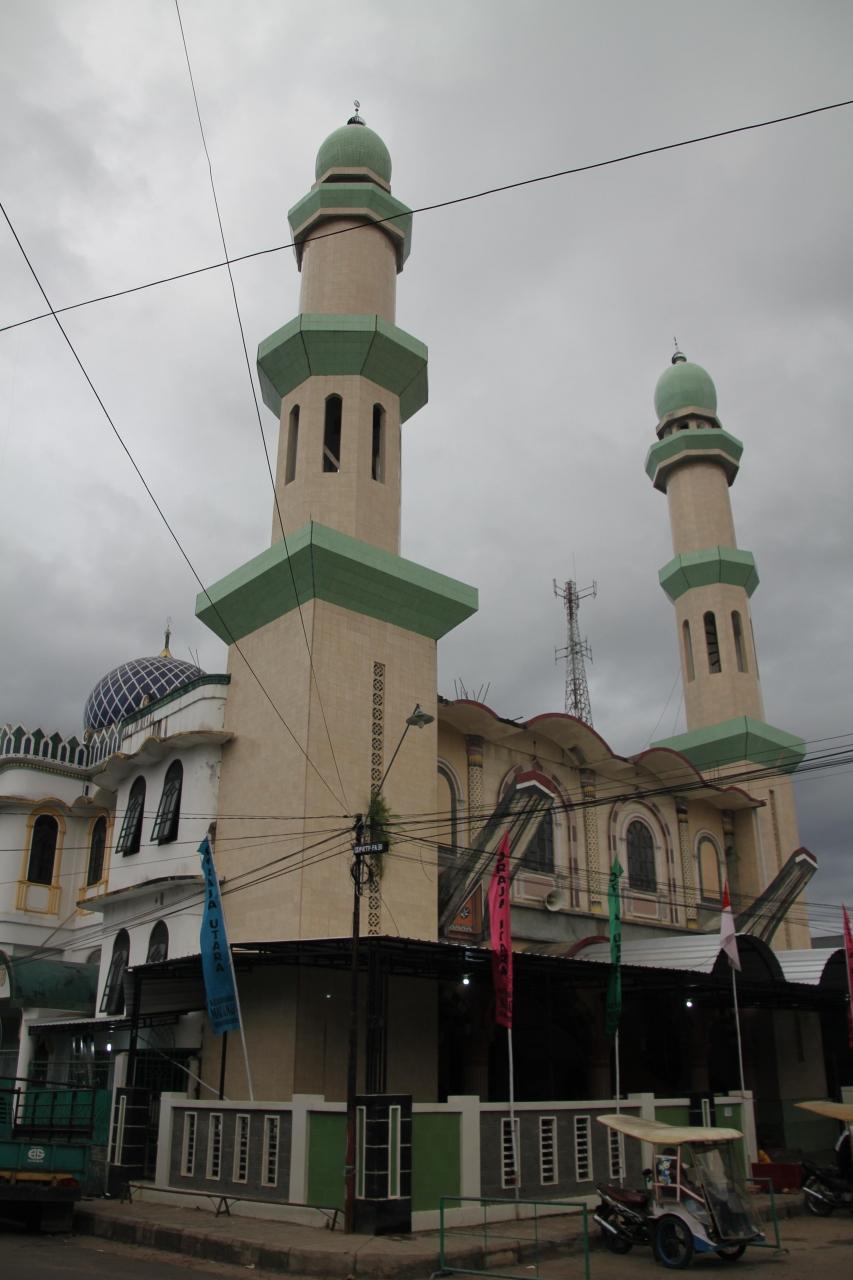 予約している夕飯まで時間があるので、ランテパオの街の中心部を散策します。アザーンが聞こえてきたので、その声に向かって歩いていくと、大きなモスクが現れました。ランテパオで最も大きいモスクてす。
