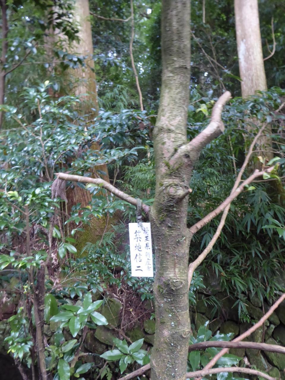 献木された木は白いビニールの板が取り付けられ、献木者の住所と名前が黒く記載された。