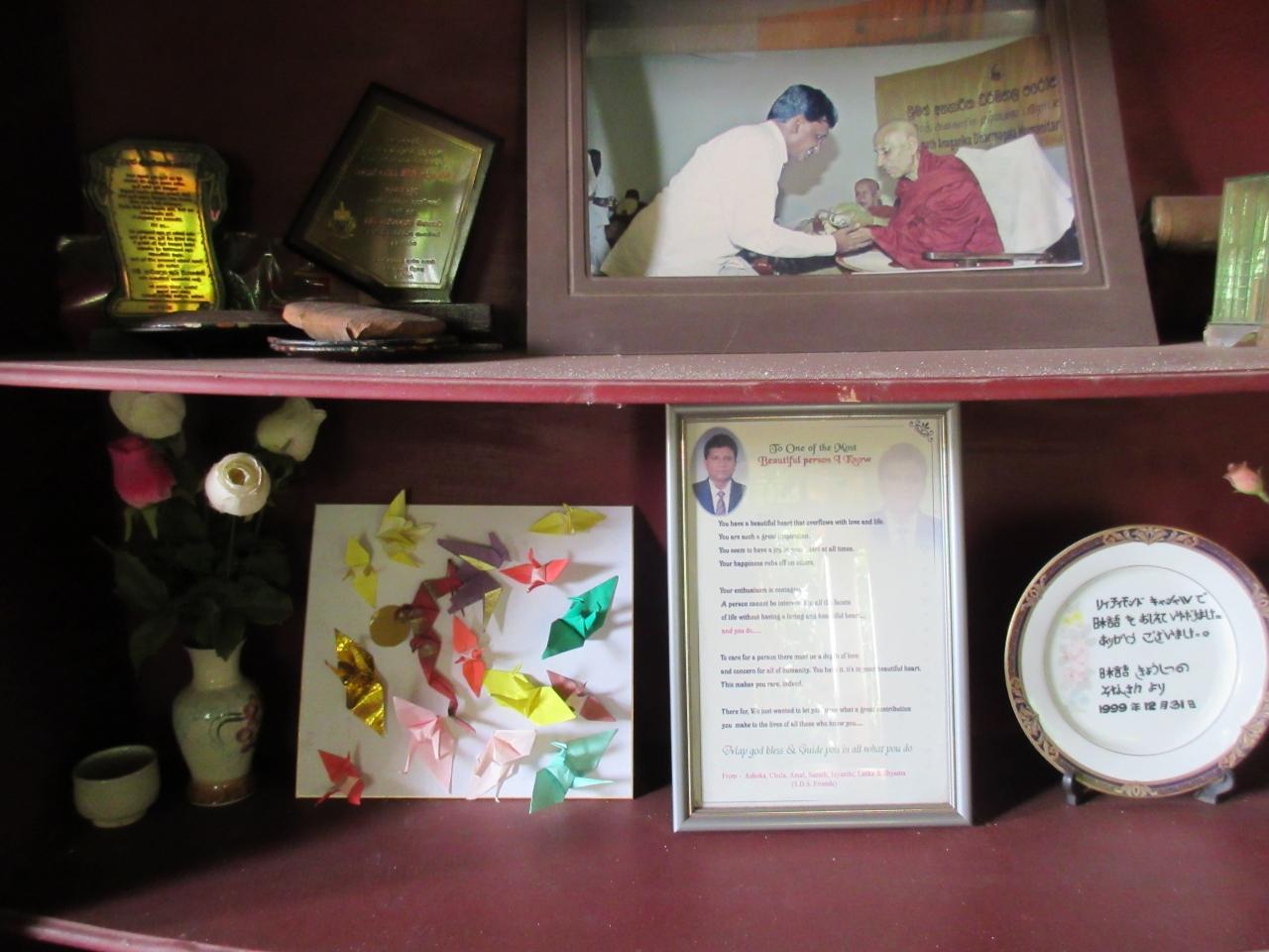 事務室? エリアに折り鶴と日本語のお皿が