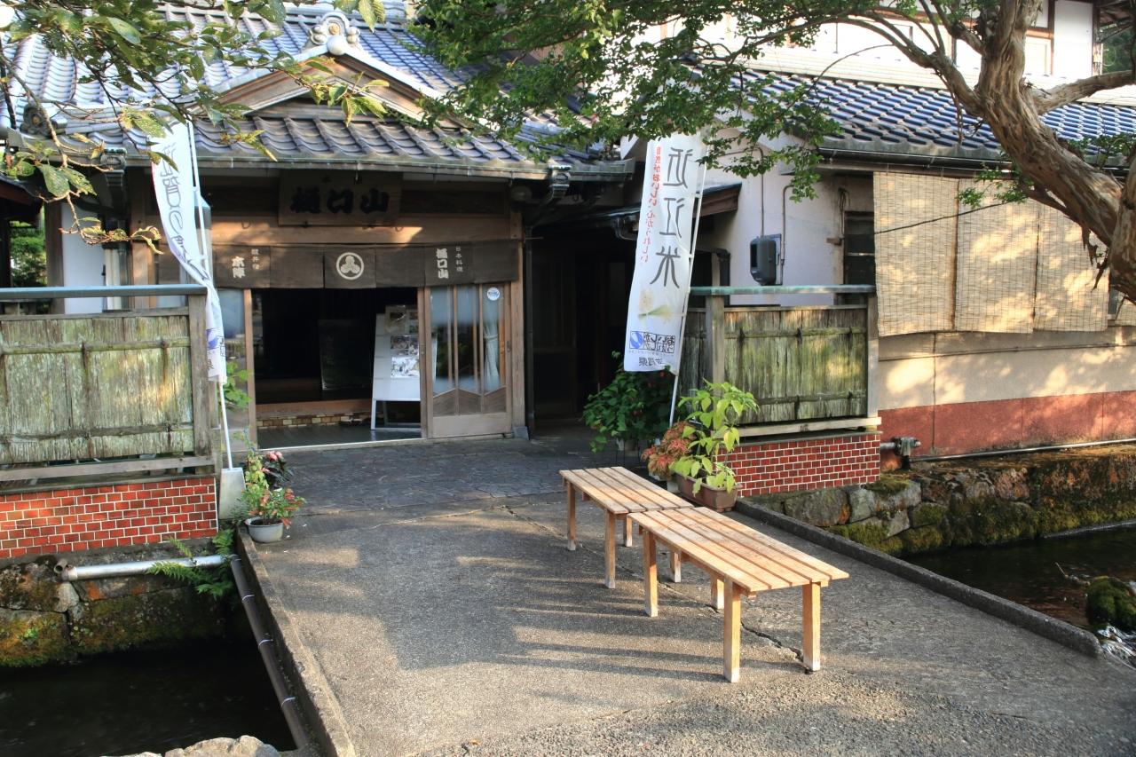 ヤマキ醤油、創業100年以上。 醒井の清流で仕込んだ風味豊かな醤油。醤油ソフトも売ってたが、梅花藻ソフトにした