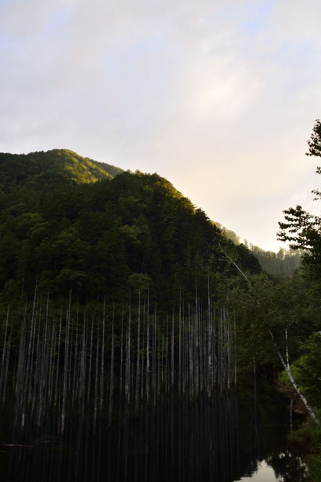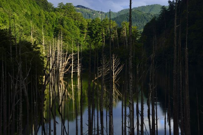 1984年9月14日 長野県西部地震で御嶽山の山体崩壊から引き起こされた土石流が王滝川に流れ込み、せき止められ、深い谷間の森が沈み天然湖が形成されたらしいです。 -