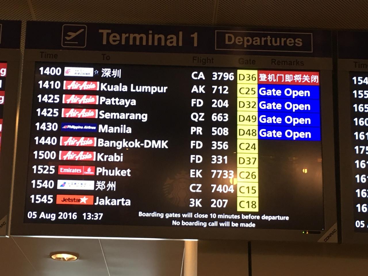 8/5 シンガポール14:25 - パタヤ15:30 エアアジア204