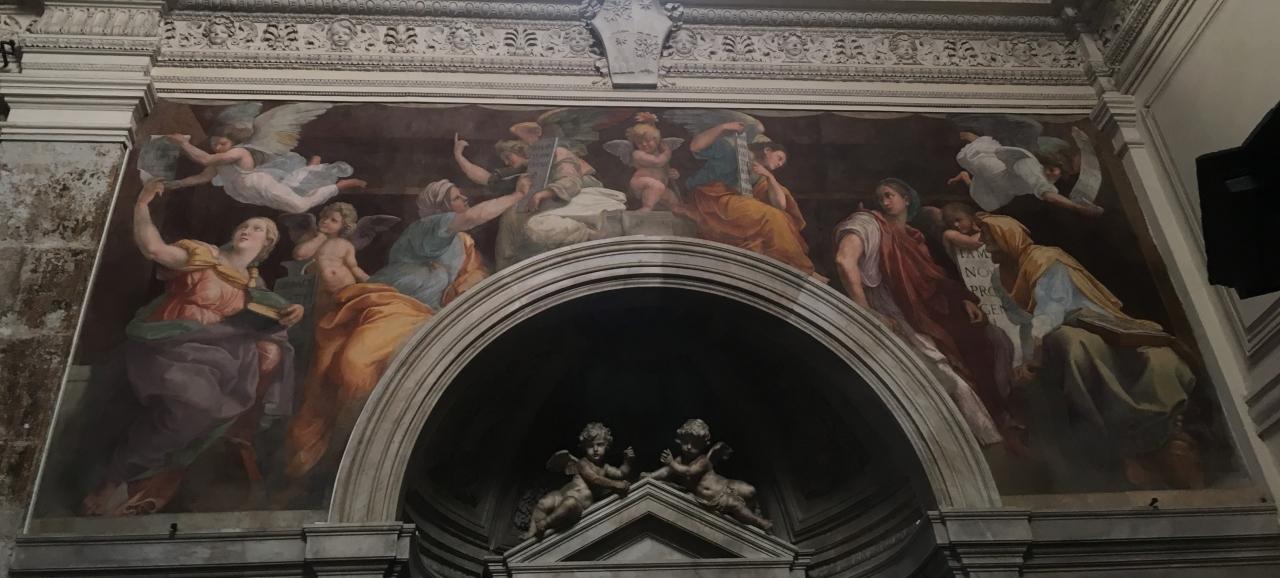 小さい教会ですがラファエロのフレスコ画あるというので見に行きました。