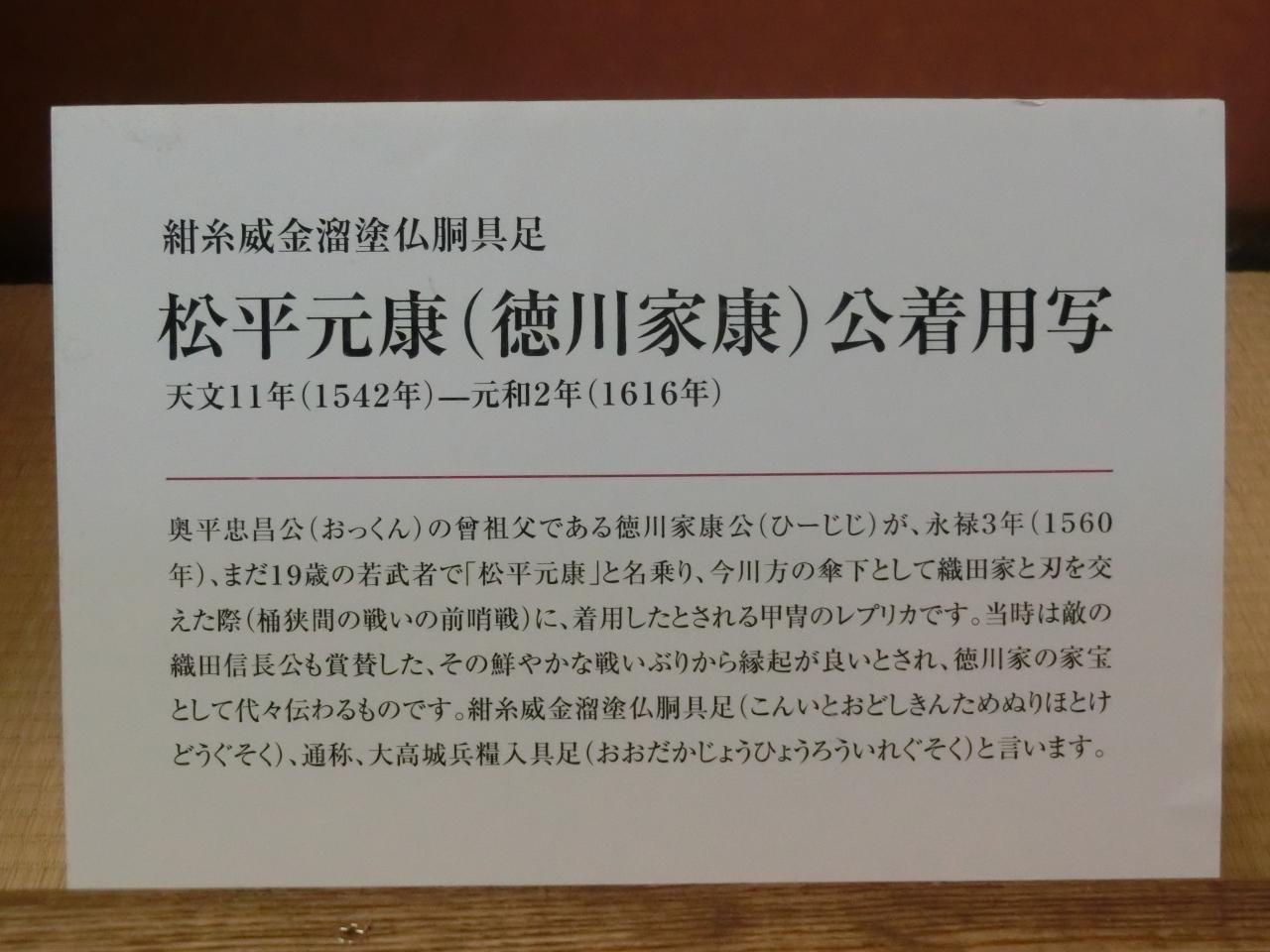 写真は「徳川家康公着用」の「紺糸威金溜塗仏胴具足(レプリカ)」です。