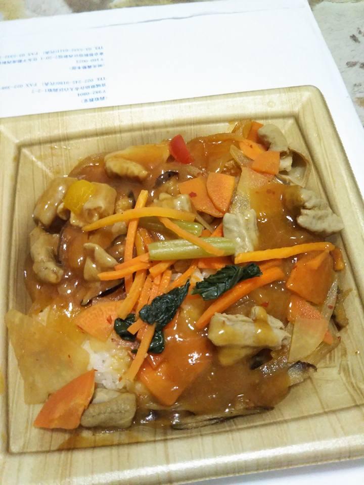 甘酢のホルモン炒めがメインの丼で、意外とうまかったです。