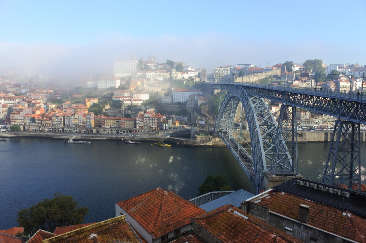 ドン・ルイス1世橋を渡って対岸へ行ってみました。午前9時過ぎですが,まだ朝靄のポルトです。