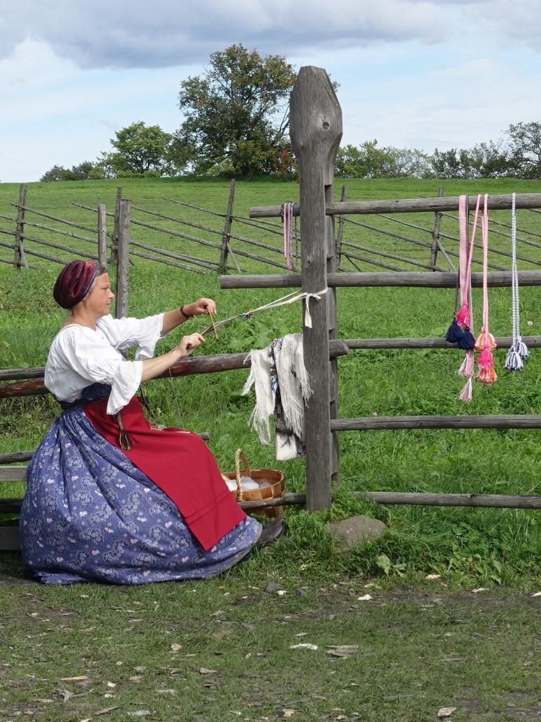 中では羊毛を紡ぐ様子のデモンストレーション中。昔の民族衣装に身を包んだお嬢さんがいい感じです。