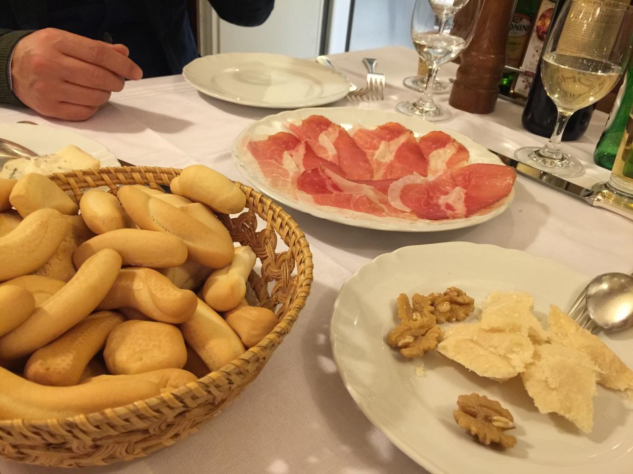 ホテルの近くのレストラン、Da Nelloで食事します。入り口は小さいけど、地下にはかなり広いフロアがあって客席が多い。