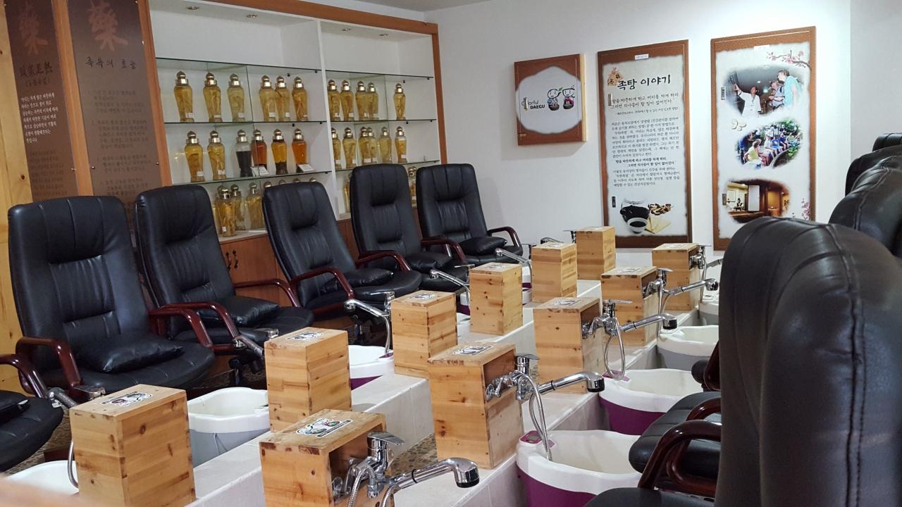 漢方博物館に来た理由は、この漢方足湯をするため!