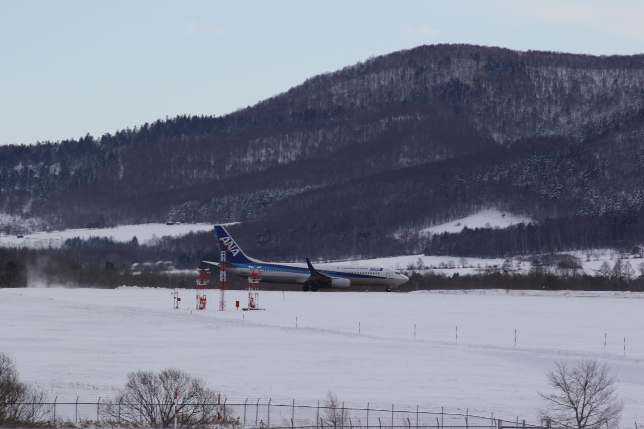 見えてきましたオホーツク紋別空港。滑走路が除雪されているのですぐにわかりました。