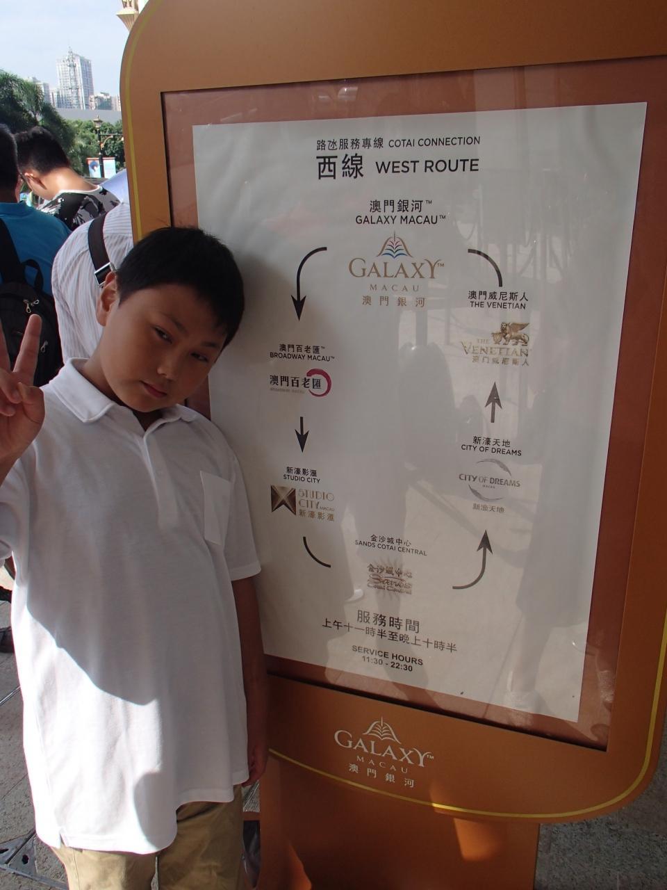 でもマカオのタクシーは子供でも5人は乗れないとの事。4人づつと英語で言われて、それならやっぱりバスにする??とか言っていたんだけど、母が私と主人と父とチビ1人で先に行けと言うのでどうするのかな?って思いつつ乗ったら、4人乗りとわかっていなかったらしく、結局バスに乗ってやってきました。