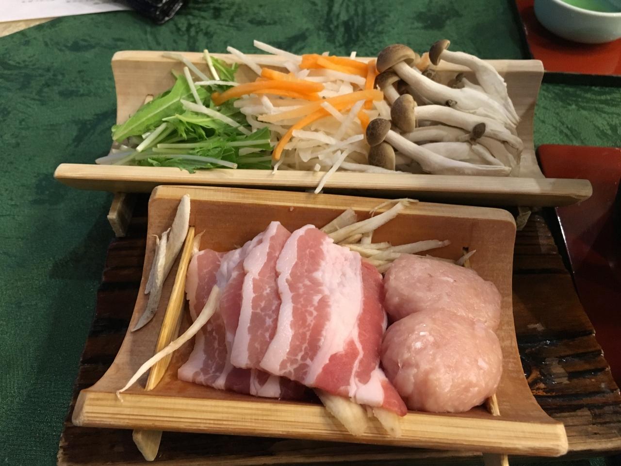 お鍋は鹿児島黒豚と、とりつくね。鶏つくねがとってもおいしかった!