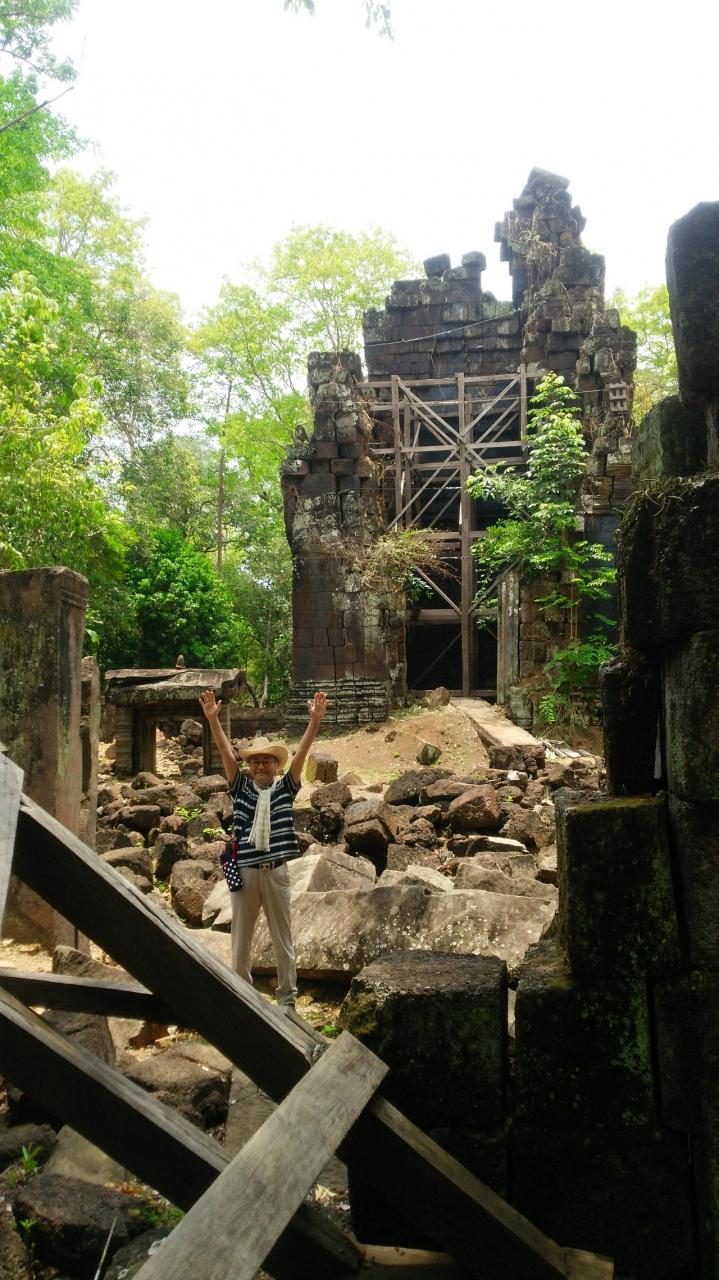 コーケー遺跡。プラサットサム。以前は中央から登っていたそうですが、今は側面から登れます。ピラミッド型の遺跡は珍しいそうです。