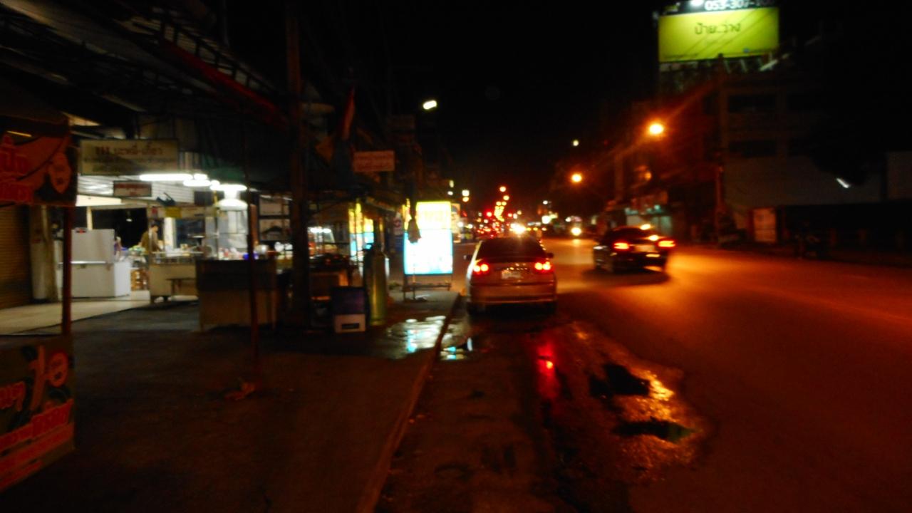 日本と違い、街灯がないのでタイの夜道は暗い。