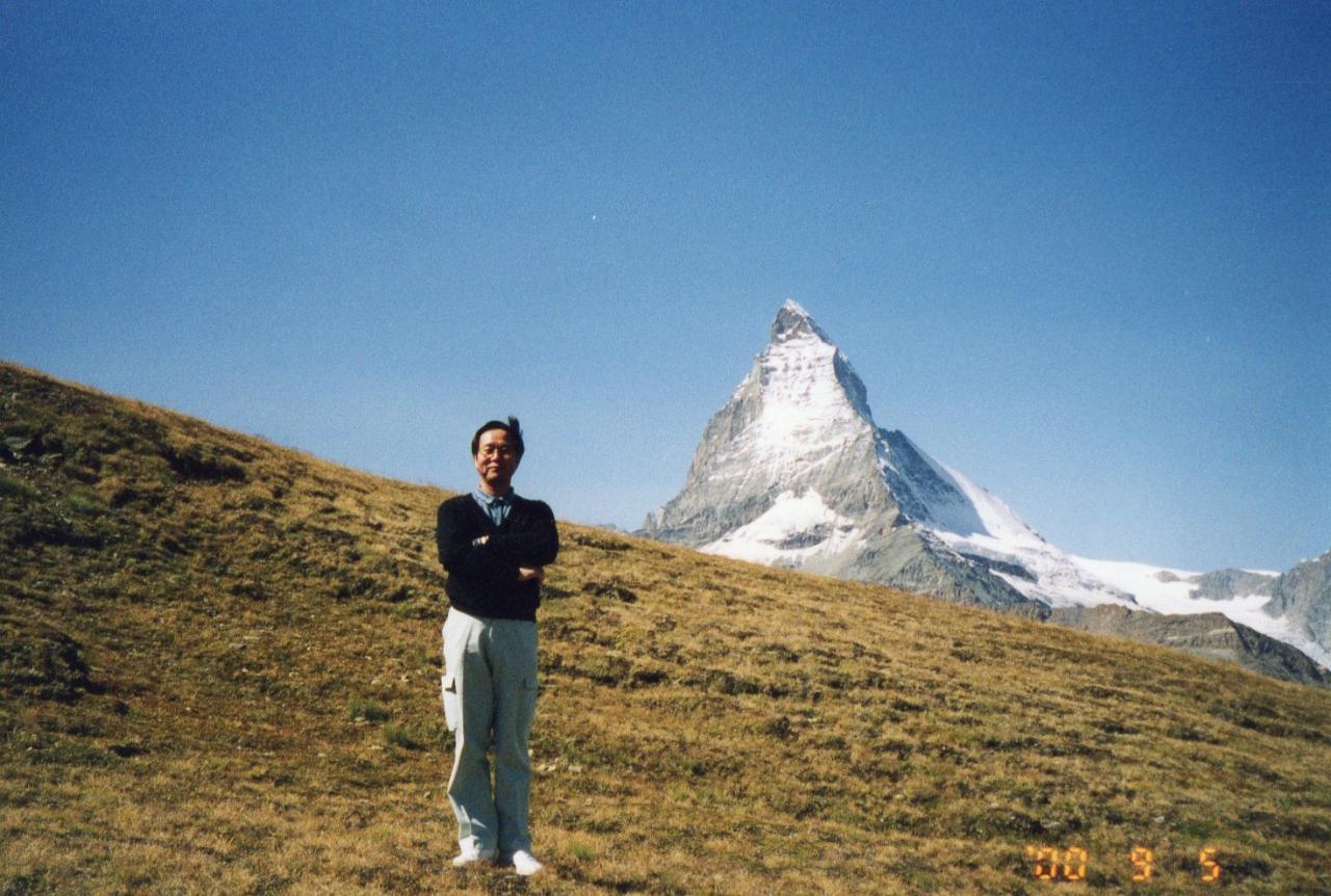 ハイキングの途中、「マッターホルン」をバックに記念撮影。