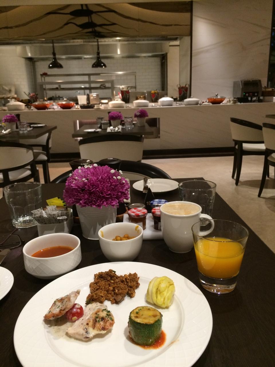 2泊するけど、明日は午前3時には空港へ向かうので、このホテルでは最初で最後の朝食ブッフェ。つい欲張ってしまう。 -