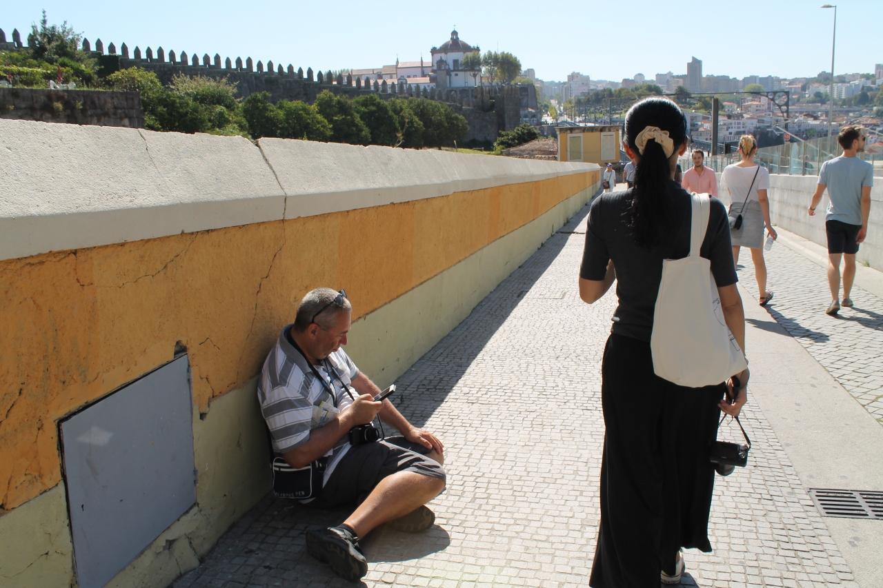 橋を渡り、昨夜賑わっていたカイス・ダ・リベイラ地区へ向かう。この橋であるが、歩道は2人並んで歩けないほど狭い。前を行く人が写真を撮るのに止まるとギリギリ歩道上でよけるか、車道に出て追い抜かねばならない程だったので車両注意である。