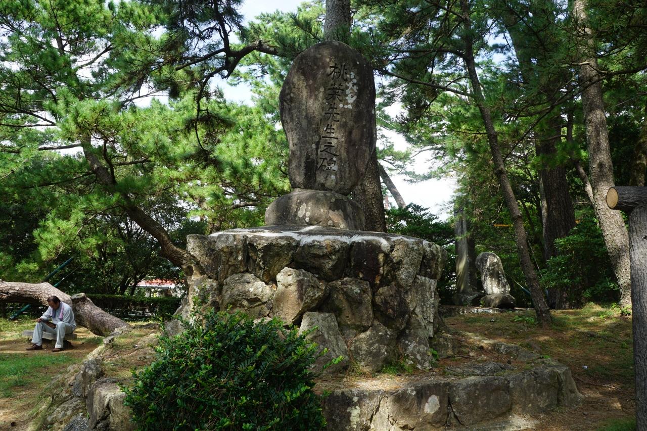 田中桃葉記念碑は、桂浜の龍馬像に向かう途中の松林の道の脇。ちょっと傾き加減の石に特徴のある字が書いてあって、すぐにそれと分かりました。
