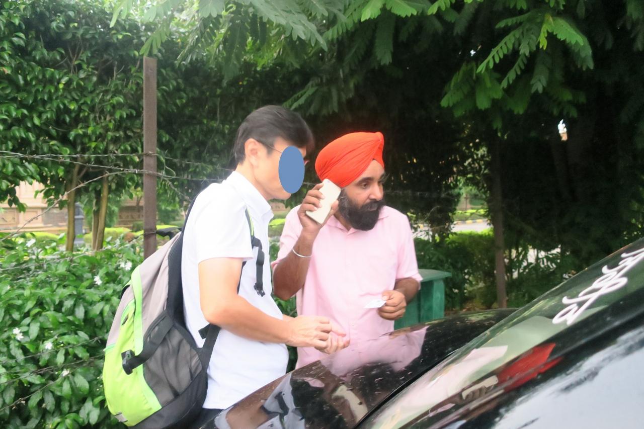 ホテルでタクシーを手配してもらうと高額になるらしいので、ホテルを出たところで待機しているターバンを巻いたドライバーさんと交渉して2000ルピーで往復してもらうことに。このドライバーさんがとても親切で道すがら色々説明してくれた。もう1日自力でデリー観光ならお願いしたいくらい・・