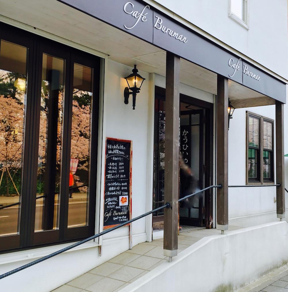 バスを降りるとカフェが!