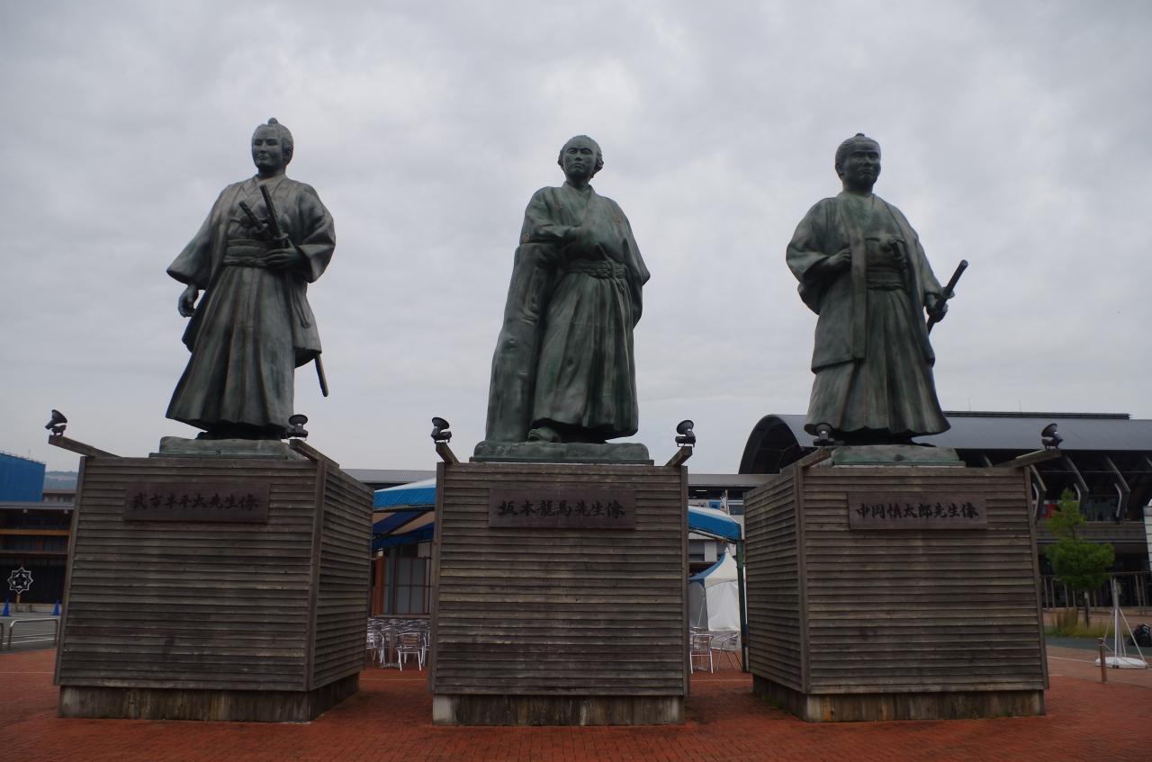 土佐の偉人像に迎えられます。